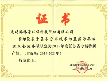 喜訊:我司的“基于藻水分離技術的藍藻污染治理成套裝備”入選江蘇省專精特新產品